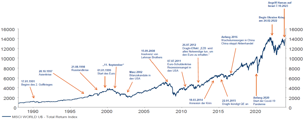 Nach einem neutralen Wochenauftakt (die Reden von Lagarde und Nagel konnten nicht beeindrucken) sorgte der deutsche HVPI (sank von 3,0% auf 2,3%), gefolgt vom EU-VPI (nun 2,4% bei einer Kernrate von 3,6%), für Kraft an den europäischen Börsen. Die Skepsis der Bevölkerung (Verbrauchervertrauen ist mit -16,9 Zählern immer noch weit von der neutralen 0 entfernt) und des Produktionssektors (mit PMI = 42,6 Zählern nur knapp über Vormonatsniveau) blieb jedoch. Wichtig in diesem Zusammenhang war die Sitzung der OPEC, die nur preisstabilisierende Maßnahmen setzte.